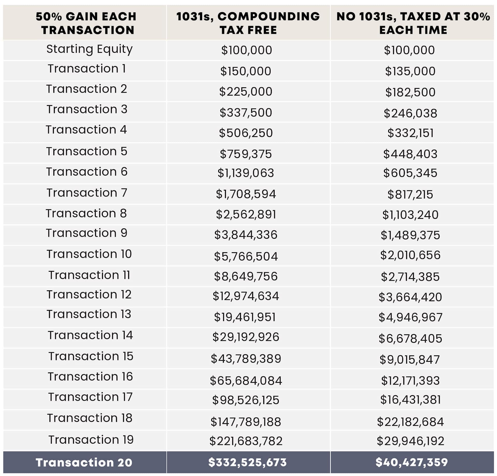 There is no limit to the number of times you can do 1031 exchanges. Many 1031 exchangers just keep exchanging. Why? Because if you keep rolling one 1031 exchange into another until your time on Earth is up, you will not only have deferred taxes on your gains each time, but you will have accomplished the seemingly impossible: avoiding taxes altogether. How is this? Because when your properties pass to your kin, they get a step-up in basis, effectively making a lifetime worth of gains invisible to the US Government.