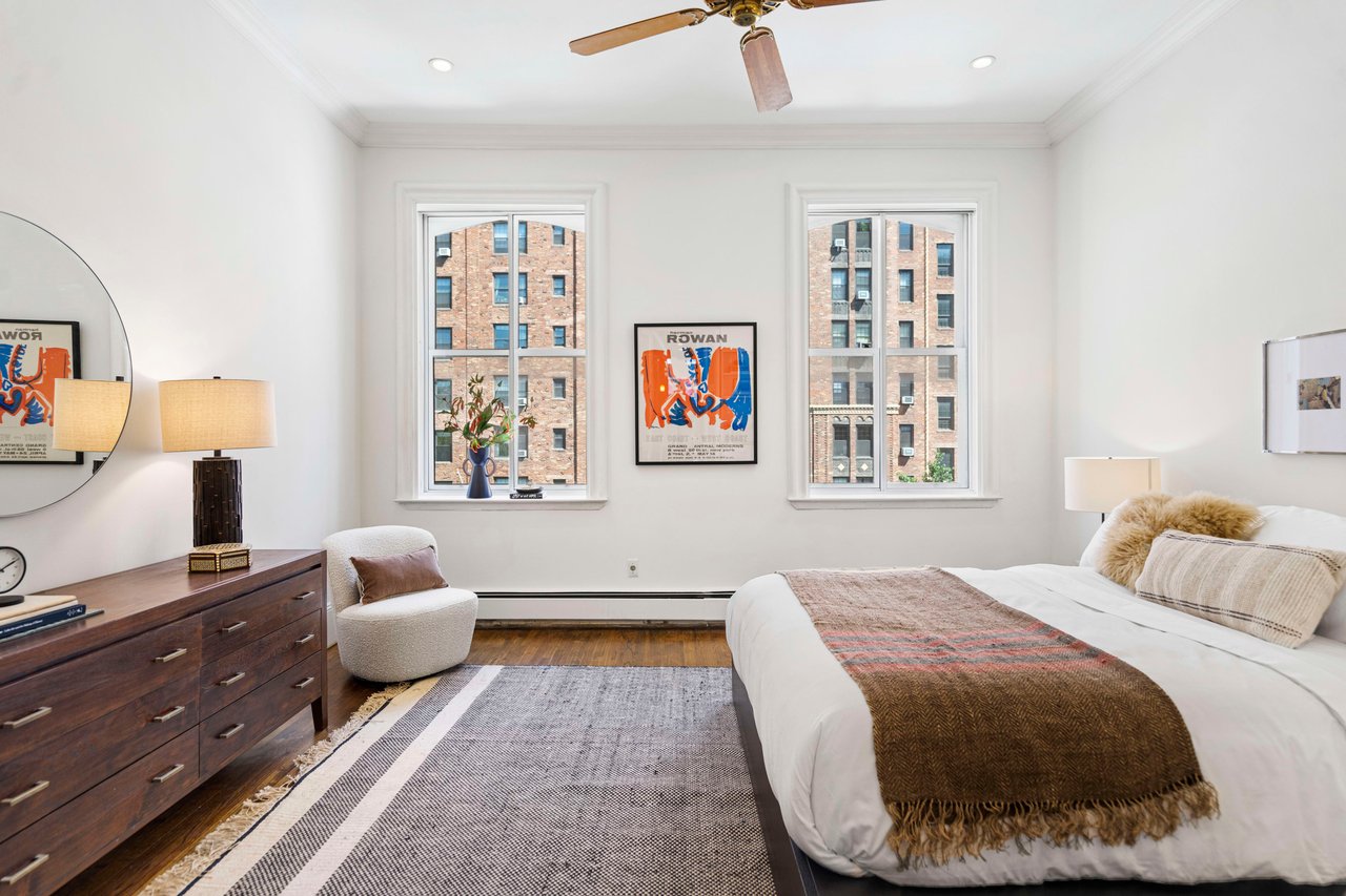 A total of eight half-flights of stairs lead to this inviting apartment that’s ready to move right into. Or you can refresh the space and renovate the bathrooms to suit more modern taste.