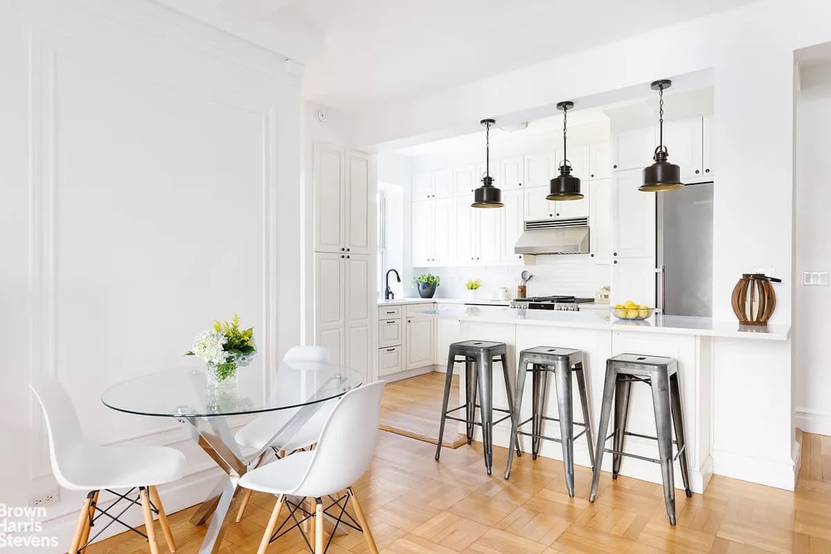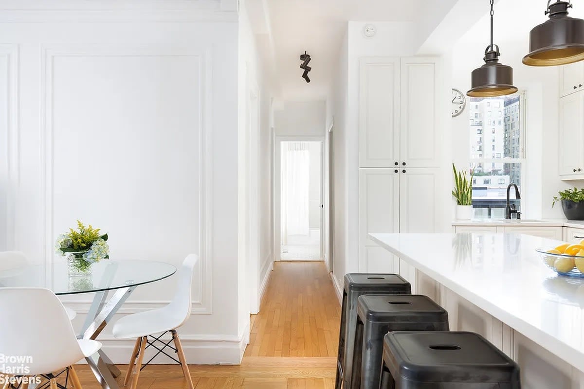 This stunning prewar residence is located on a prime Upper West Side block moments from Central Park. The apartment was completely gut renovated in 2018 creating a beautifully modern two-bedroom, one-and-a-half-bath home. The kitchen was brilliantly opened up to the living/dining room, adding sleek white granite countertops, a cook stove, and hood, and top appliances including a Bosch dishwasher, a Liebherr refrigerator/freezer, a Sharp microwave, and a Bosch washer/dryer. The custom cabinets were well thought out to include a pantry and an abundance of storage. The large expanded windowed bathroom was beautifully designed with white tiles and countertops. A second half bathroom was also added. The bedrooms are well-proportioned with large custom-outfitted closets. For even additional storage, the front entry closet was smartly enlarged. The apartment is pin-drop quiet. Because the apartment is on the seventh floor, unlike the other D-line apartments below, it clears buildings on both sides–allowing excellent sunlight from both the north and south exposures. The views north see clear through to 72nd Street with trees in between, the lovely east views out of the kitchen is of tree-lined 71st Street, and as a bonus, the south views out of the bathroom are of the skyscrapers on Central Park South. Apartment Features: Prewar details, beamed ceilings, hardwood floors, great closet space. Building Features: Live-in superintendent, new lobby and elevator, key-fob entry and intercom, central laundry, bicycle storage, and private storage units. Pets are welcome. Conveniently located near public transportation, Central Park, as well as top shopping and restaurants. This is a wonderful home!